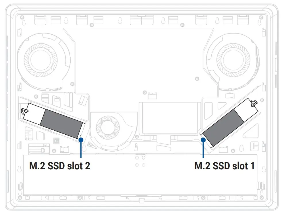 Two RAM and SSD slots. Note: It's DDR5 so don't worry if the RAM is only in one slot.